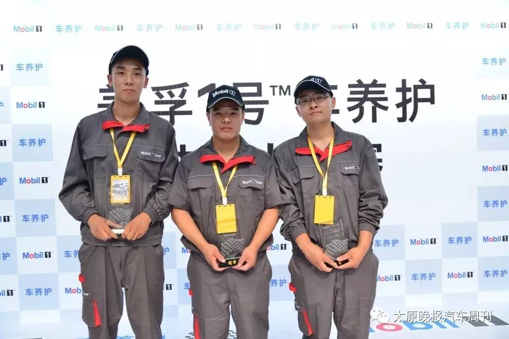 2017年美孚1號車養(yǎng)護技能大師賽前三名技師合影